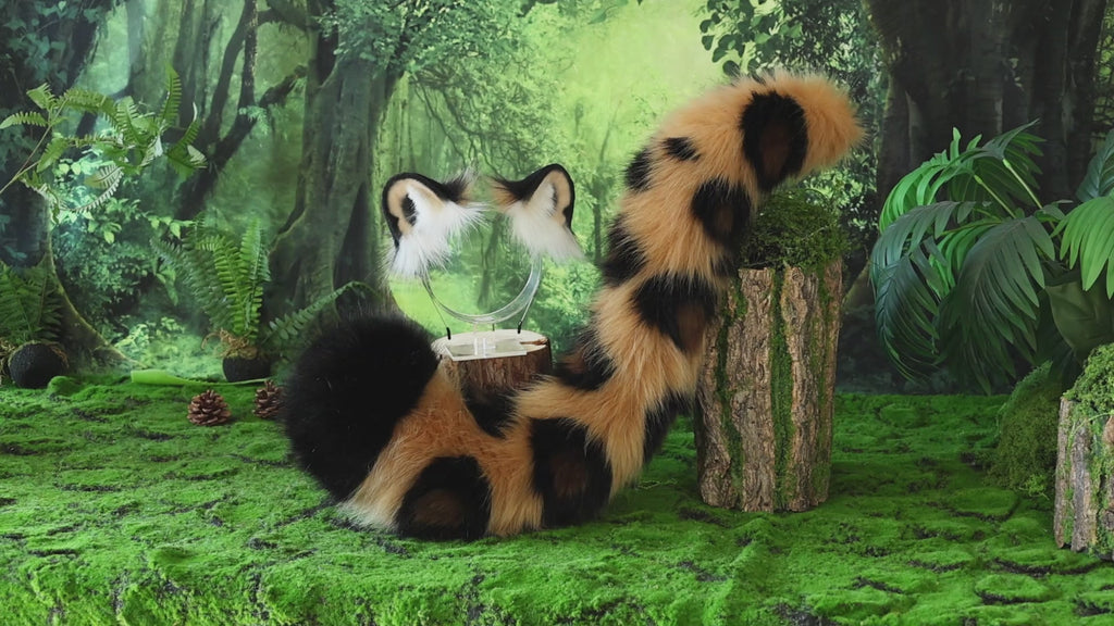 Realistic Faux fur Snow Leopard Ear and Tail Butt Plug Role Play Snow Leopard Cosplay Leopard Ear and Tail Kemonomimi Halloween Gift
